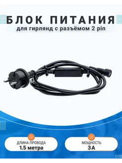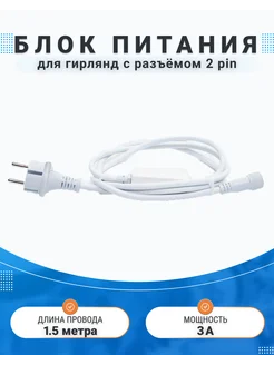 Блок питания для гирлянды 1 5 м тип разъёма 2 pin