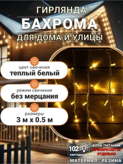 Гирлянда уличная Бахрома 3x0 5 м теплый белый без мерцания
