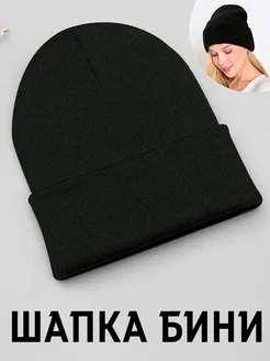 Шапка-бини черная "Black", демисезонная, акрил, размер 46-58