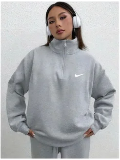 Свитшот оверсайз с воротником на молнии y2k 2025