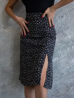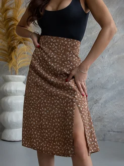 Юбки летние в мелких цветочках с разрезом