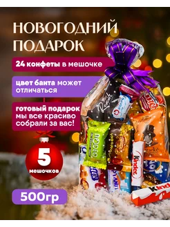 Новогодний сладкий подарок в мешочке 5 шт ассорти 500гр
