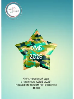 Воздушный шар звезда "ДМБ 2025" на дембель, 45 см,камуфляж