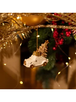 Елочная игрушка машина с елкой 7х3,5х6,5 см