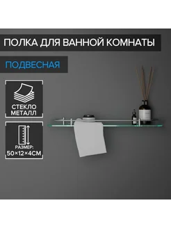Полка металлическая для ванной, стекло, 50х12х4 см