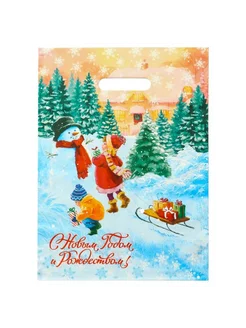 Пакет с Новым Годом и Рождеством, 30x40 см, полиэтиленовый