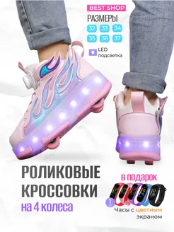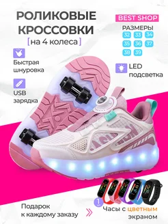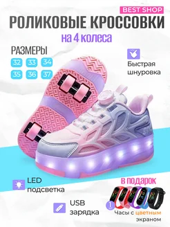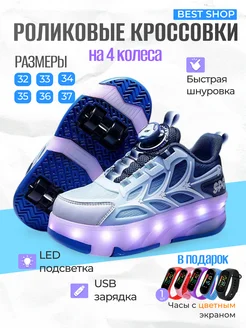 Роликовые кроссовки на 4-х роликах светящиеся с USB