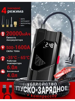 Пусковое зарядное устройство компрессор для автомобиля 4 в 1