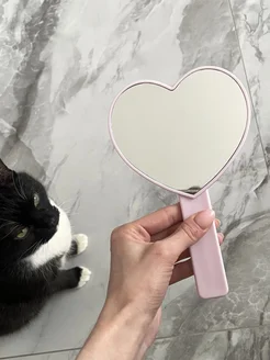 Зеркало с ручкой Hand mirror pink heart