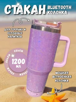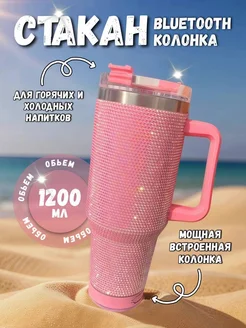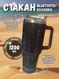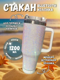 Кружка термос Bluetooth колонка со стразами 1200 мл