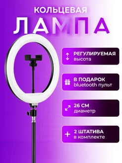 Кольцевая лампа со штативом светодиодная