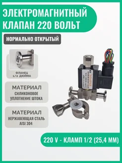 Клапан электромагнитный нержавейка 220В под кламп 1 2