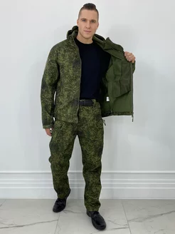 Флисовый костюм тактический теплый Softshell с капюшоном