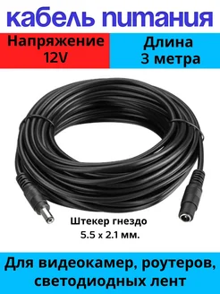 Удлинитель кабеля питания 3 метра для камер DC 5 5х2 1 mm