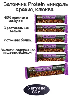Nut&go Батончик миндаль, арахис, клюква, 6 шт по 36 г