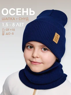 Детская демисезонная шапка бини со снудом