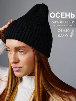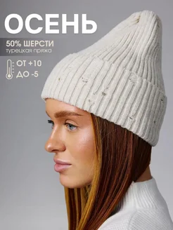Вязаная демисезонная шапка бини «Рванка» с отворотом