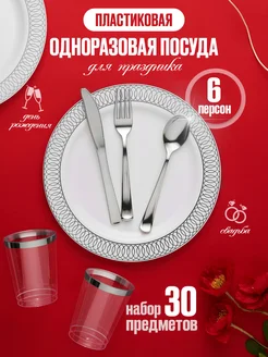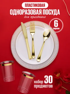 Одноразовая пластиковая посуда для праздника на 12 персон