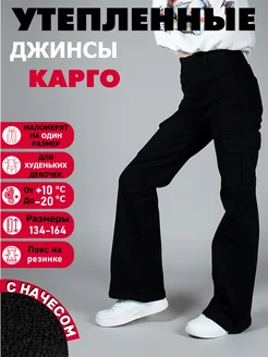 Джинсы карго утепленные для худеньких девочек