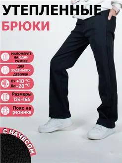 Брюки утеплённые школьные для девочек на резинке