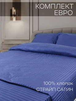 Комплект постельного белья однотонный ЕВРО страйп-сатин