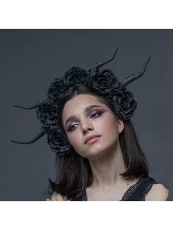 Хеллоуин ободок для фотосессии Корона с черными цветами