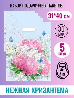Набор подарочных пакетов "Нежная хризантема" 5 шт 31*40 см