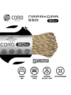 Паракорд 550 RUS 30м 4мм светоотражающий TAN