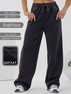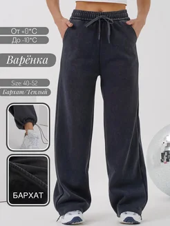 Штаны варенка прямые широкие на резинке c начесом теплые