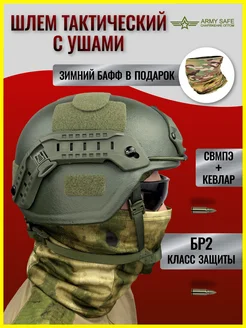 Шлем военный тактический с ушами, кевлар + свмпэ, олива, БР2