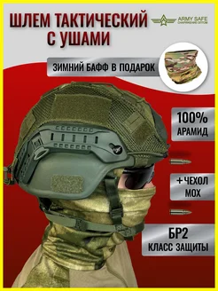 Шлем тактический военный с ушами, арамид, + чехол, БР2