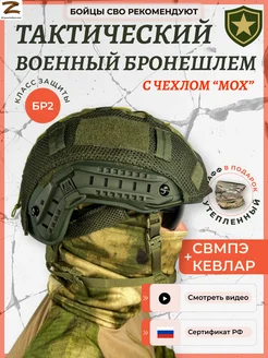 Шлем тактический военный без ушей, свмпэ+кевлар, мох, БР2