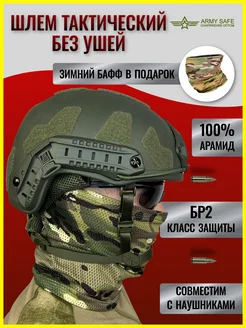 Тактический шлем военный без ушей, свмпэ+кевлар, БР2 + чехол