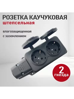 Колодка каучуковая розетка влагозащищённая 2 гнезда