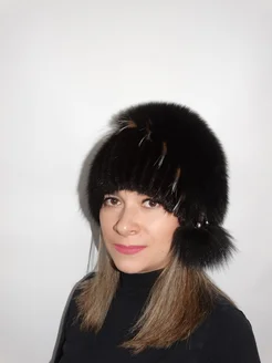 Шапка меховая зимняя "Капля" ондатра чернобурка