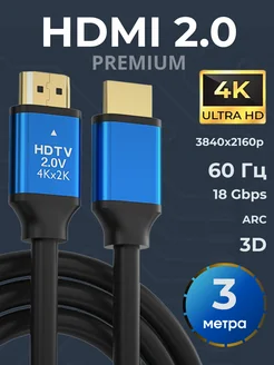 HDMI Кабель 2.0 4K 2К 3м для телевизора и монитора шнур