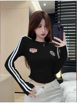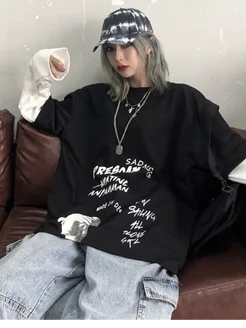 Лонгслив оверсайз черный у2к с принтом унисекс