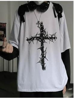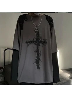 Лонгслив оверсайз черный у2к с принтом унисекс Крест