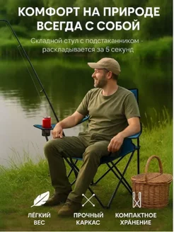 Стул складной туристический со спинкой, кресло рыбака