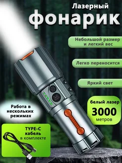 Фонарь ручной аккумуляторный мощный лазерный светодиодный