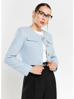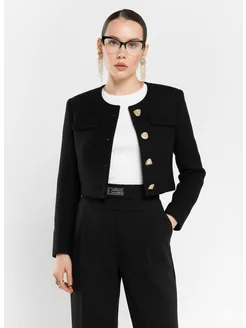 Жакет твидовый черный укороченный-пиджак в стиле Шанель