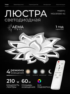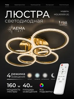 Люстра потолочная светодиодная для зала с пультом