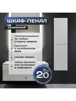 Шкаф пенал в ванную навесной узкий 30х120х27, МДФ