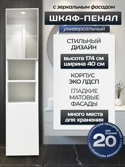 Шкаф пенал напольный в ванную зеркальный 40x174x27