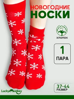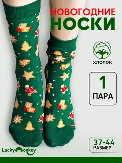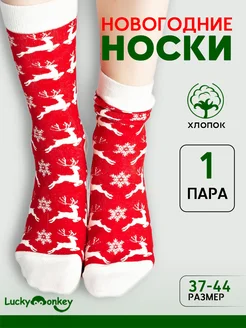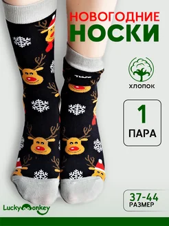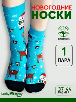Носки Новогодние высокие хлопковые с Дед Морозом и оленем