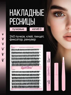 Набор пучковых накладных ресниц с клеем изгиб D 30D 40D