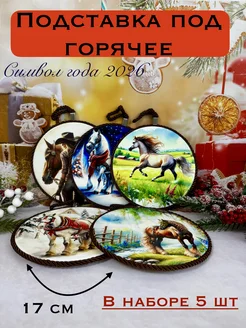 Новогодняя подставка под горячее лошадь круглая 2026