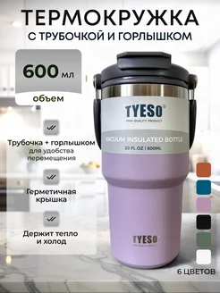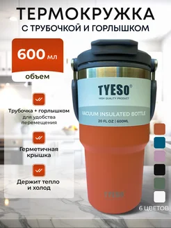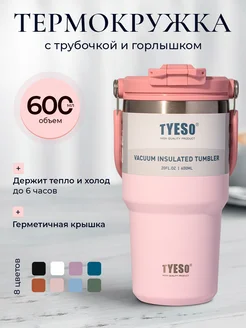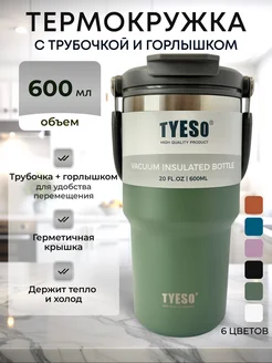 Термокружка 600 мл автомобильная для кофе и чая с трубочкой