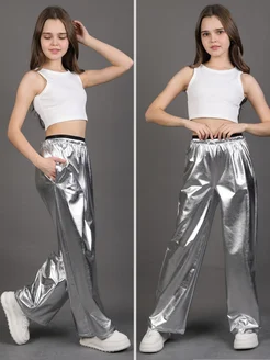 Брюки палаццо широкие серебро металлик