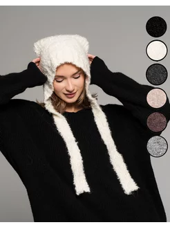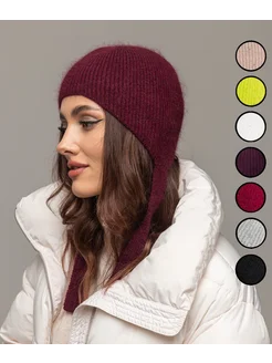 шапка чепчик женский с завязками из ангоры